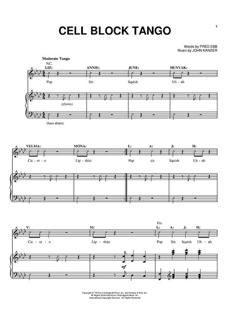 Download online cell block tango music sheet mobipocket ManyBooks